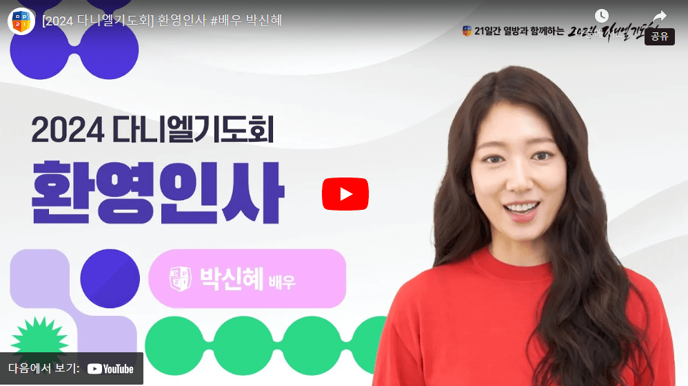 2024 다니엘 기도회의 다른 간증영상을 시청하시려면 다음 글을 확인해 주세요.