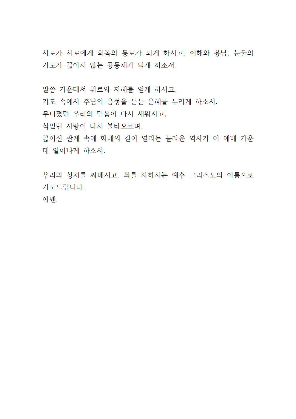 무너진 관계가 회복되고, 무거운 마음이 주님의 사랑으로 가볍게 되기를 소망합니다.