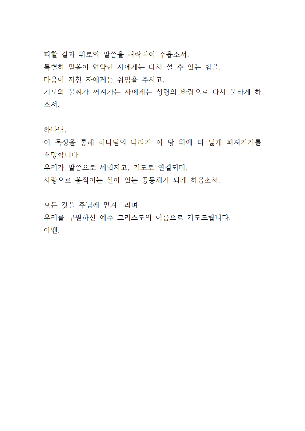 이 시간 함께한 우리 마음 가운데 주님의 평안이 충만하게 하시고,