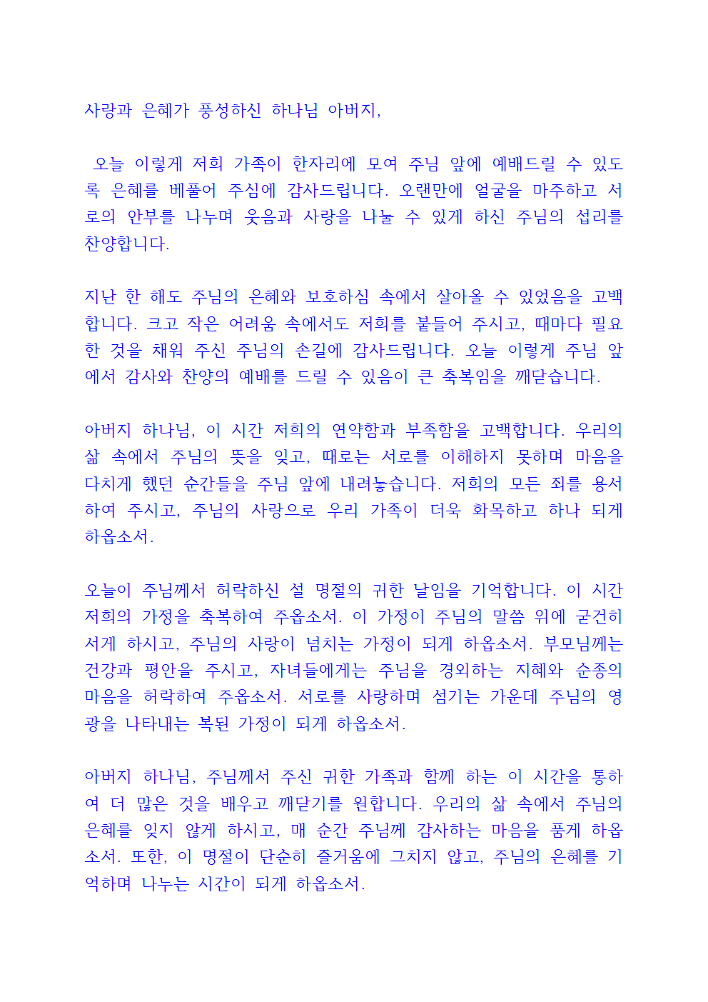 ※ 다른 형식의 설날 가정예배 기도문을 참고하시려면 다음 글을 확인하세요.