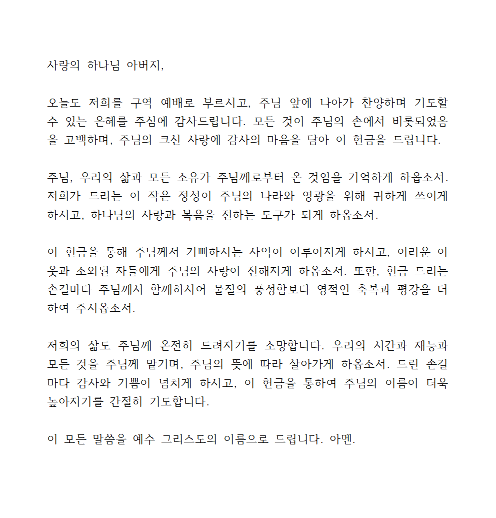 예수 그리스도의 이름으로 감사하며 기도드립니다.