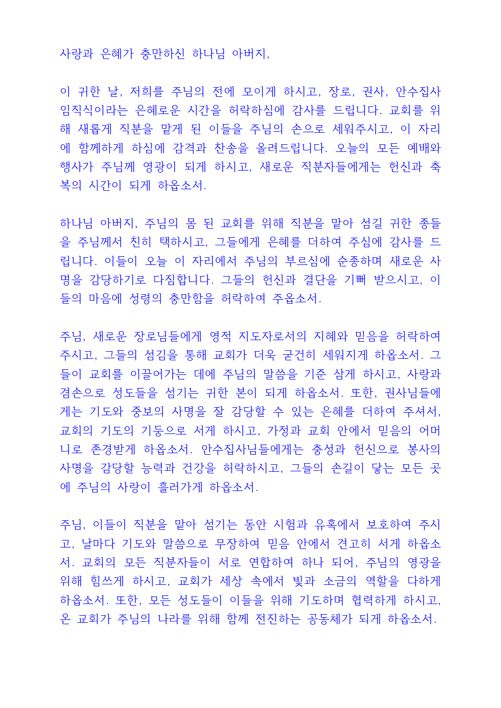 임직식 기도문 내용