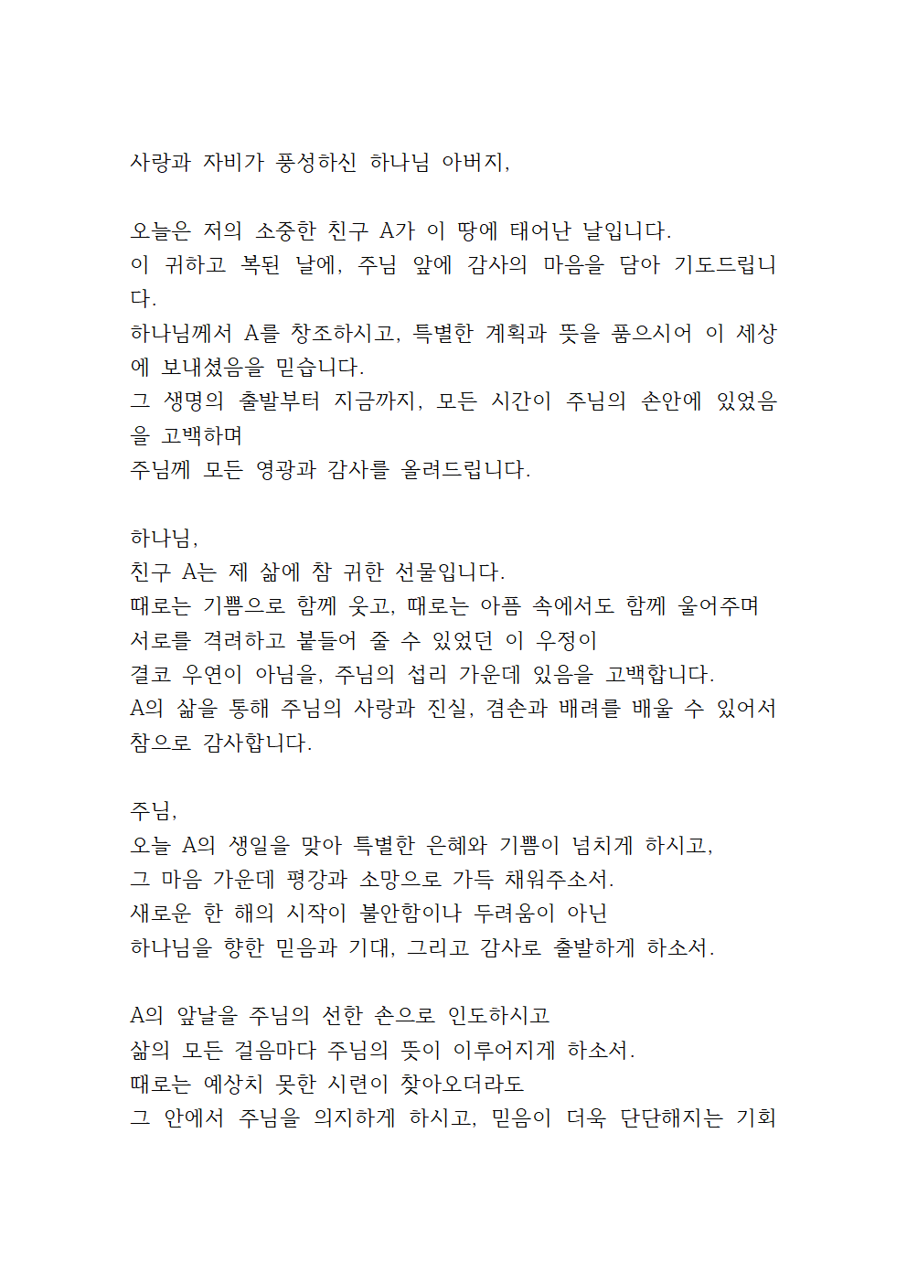 이번 글에서는 '친구 A'의 생일 기도문을 안내해 드리겠습니다.