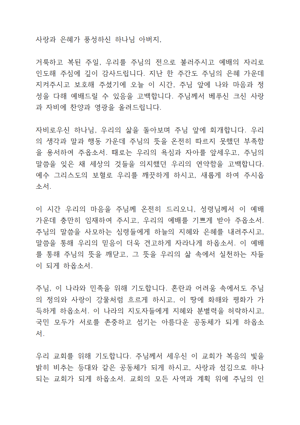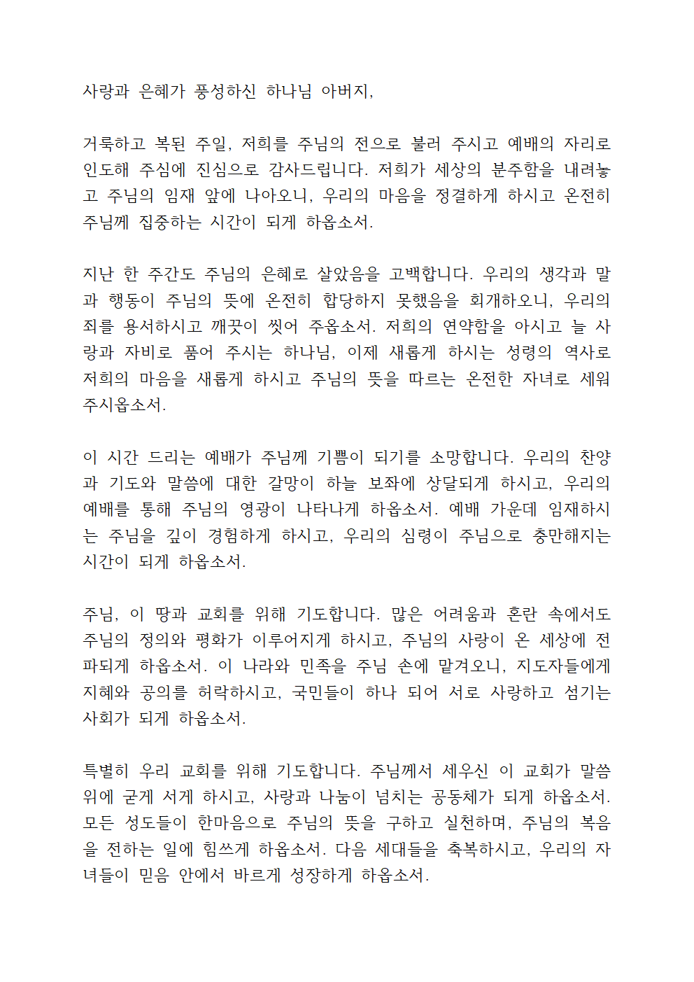 2025년 3월 둘째 주일예배 대표기도문 파일