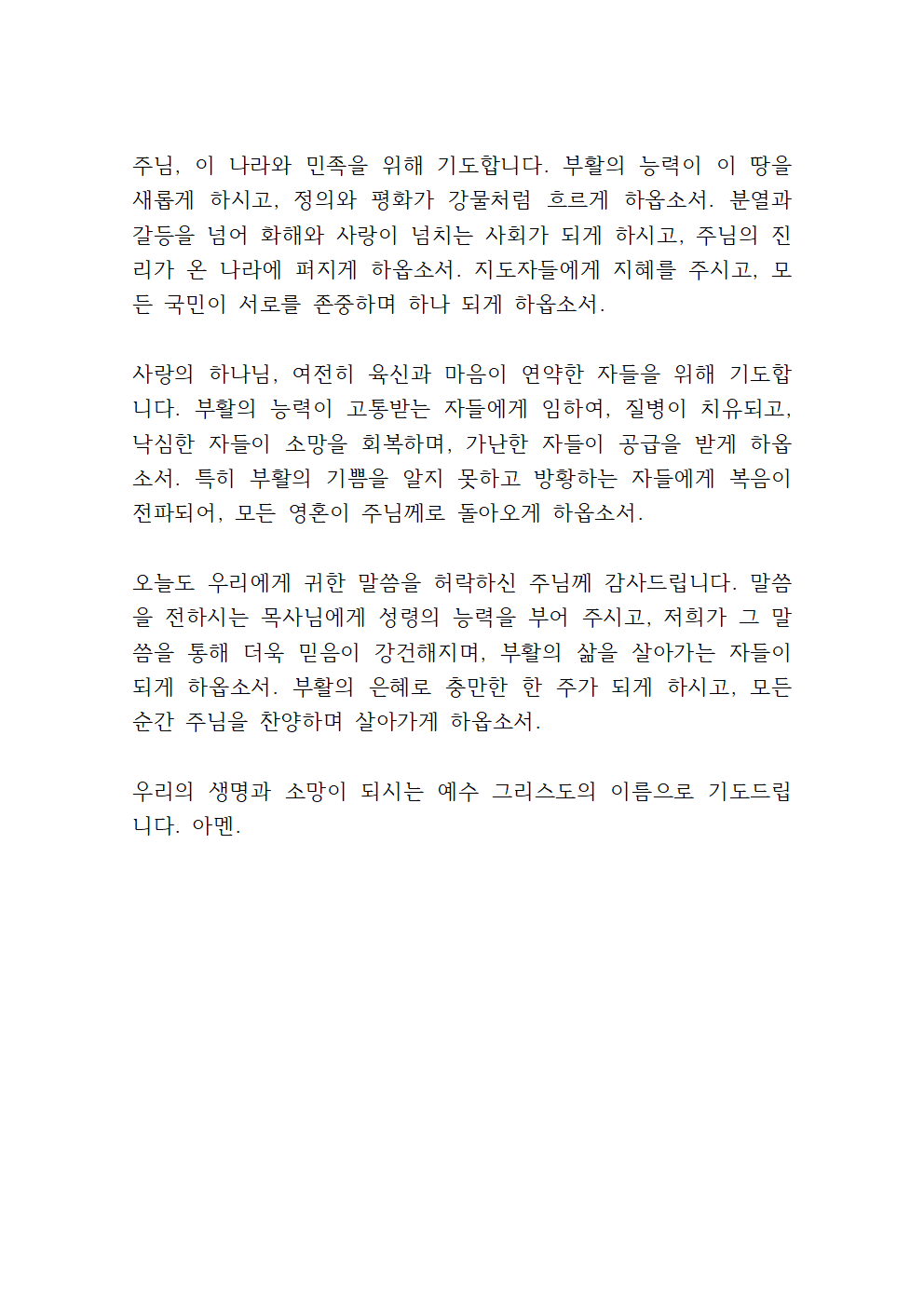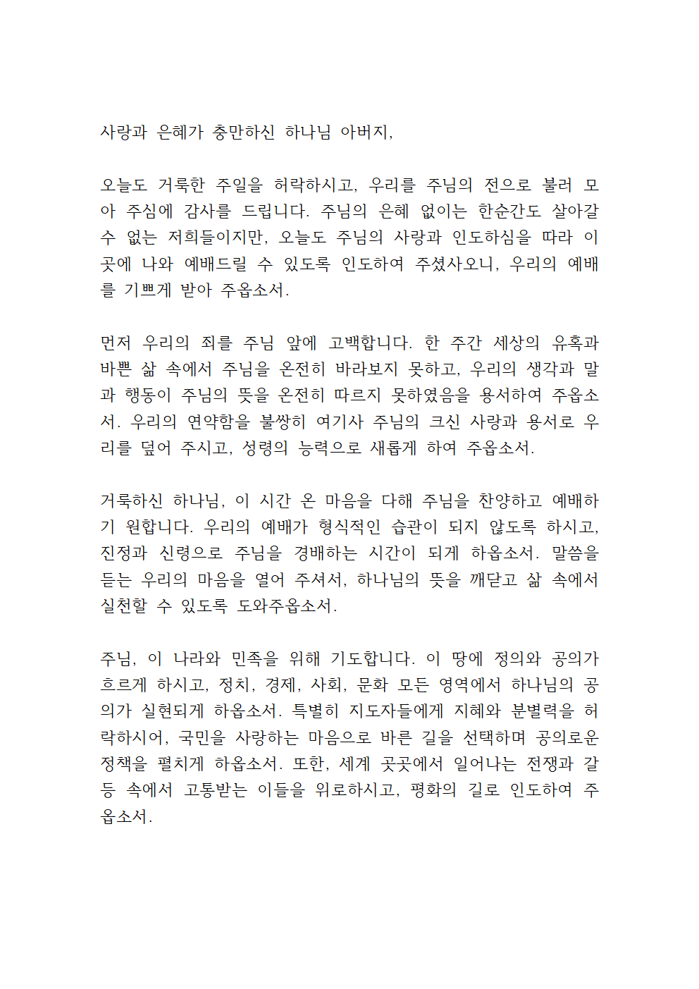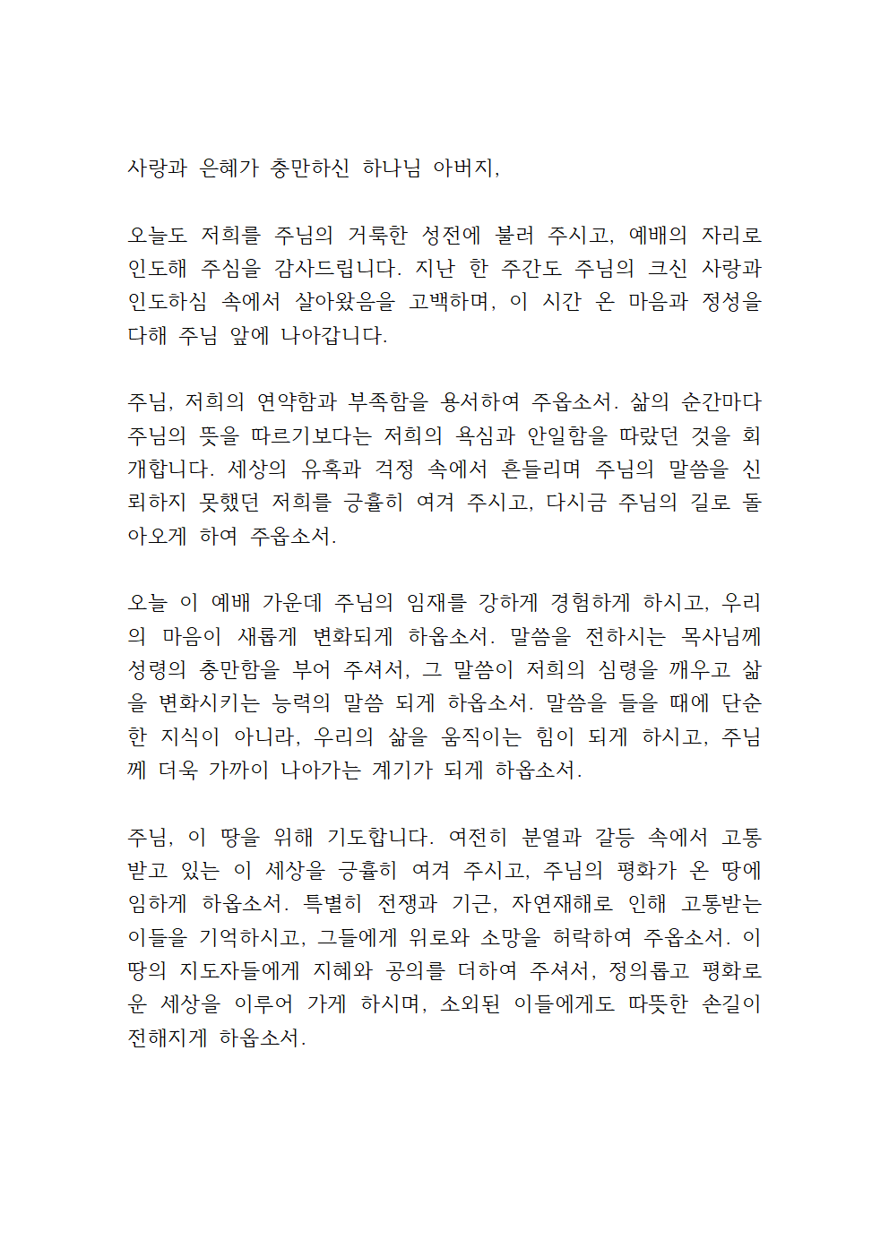 4월 4주 주일예배 대표기도문 3
