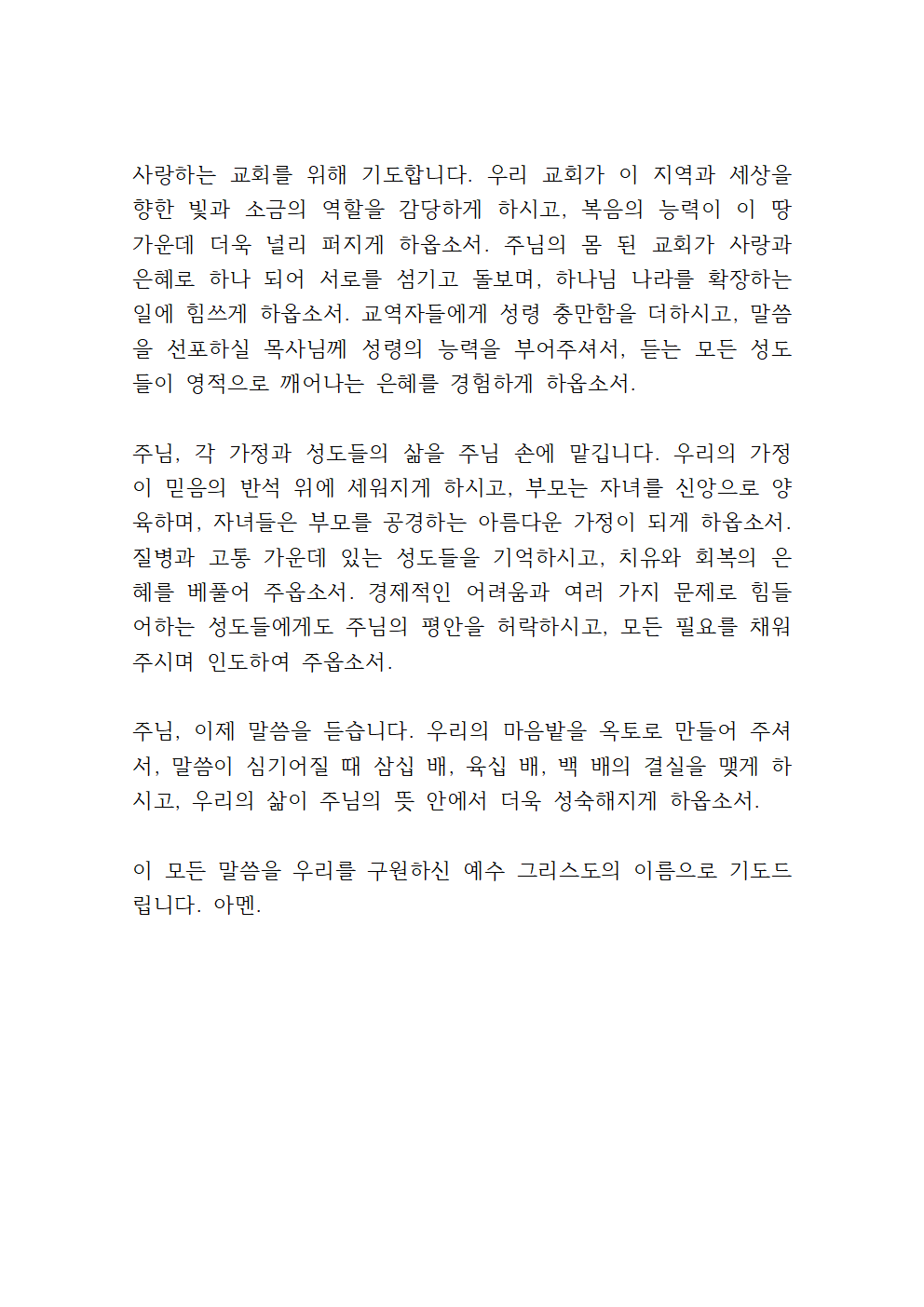 이 모든 말씀, 우리를 죄에서 구원하시고 영원한 생명의 길로 인도하시는 예수 그리스도의 이름으로 기도드립니다. 아멘.
