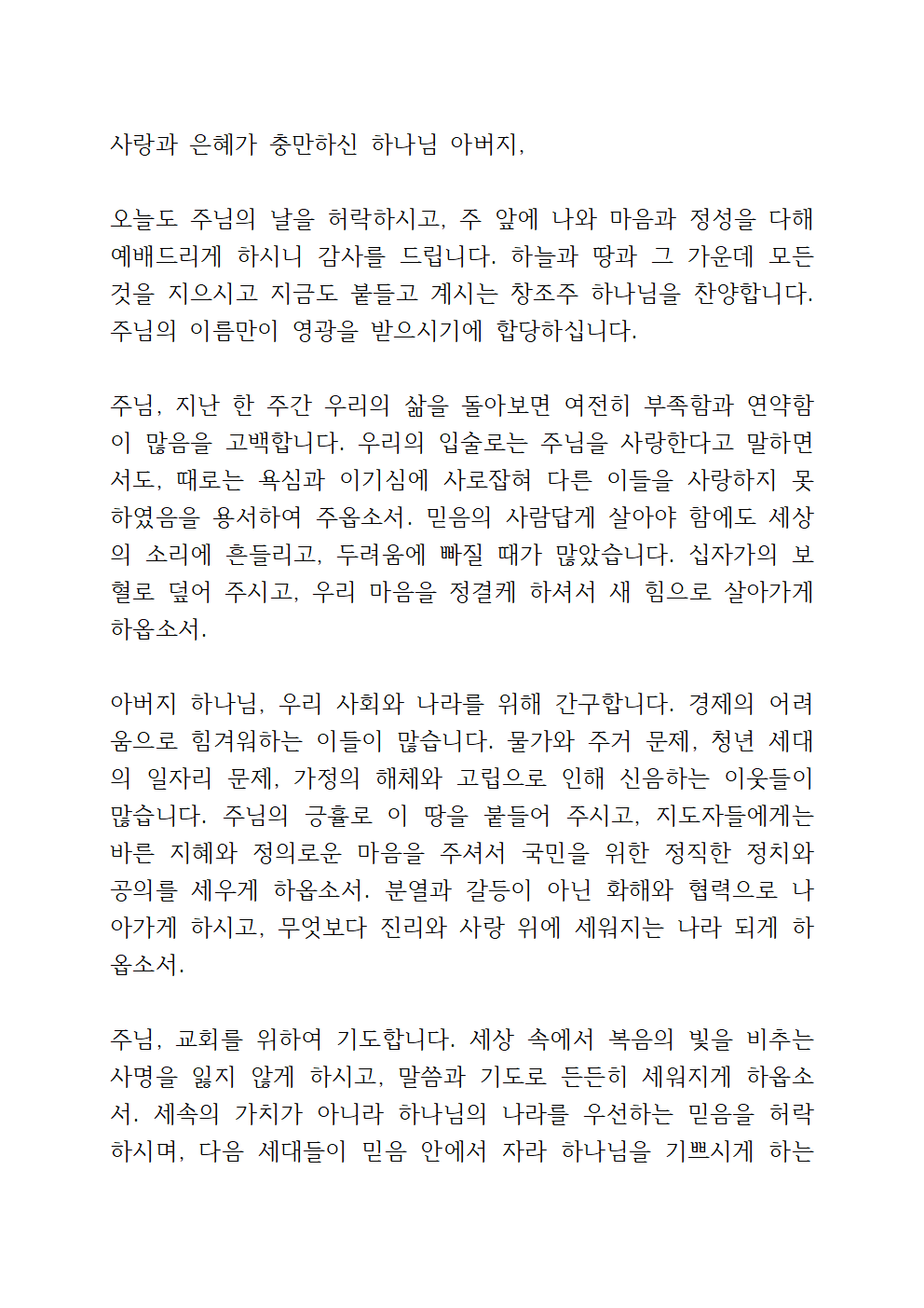 이번 글에서는 2025년 9월 둘째 주일 예배 대표기도문을 안내해 드리겠습니다.
