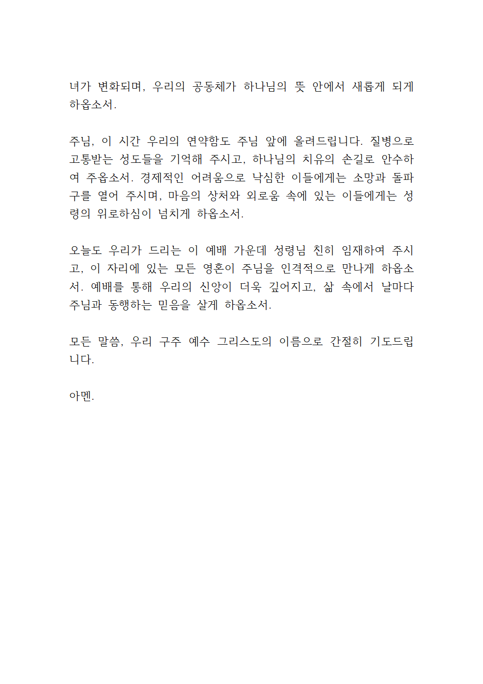 이번 글에서는 6월 수요예배 대표기도문 모음 (hwp 파일)을 안내해 드리겠습니다.