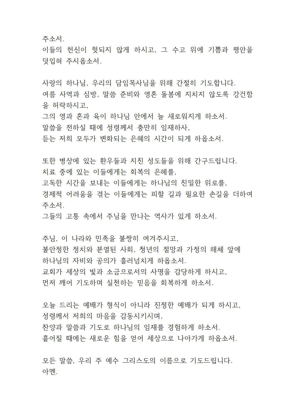 8월 둘째 주일예배 대표기도문 (2)