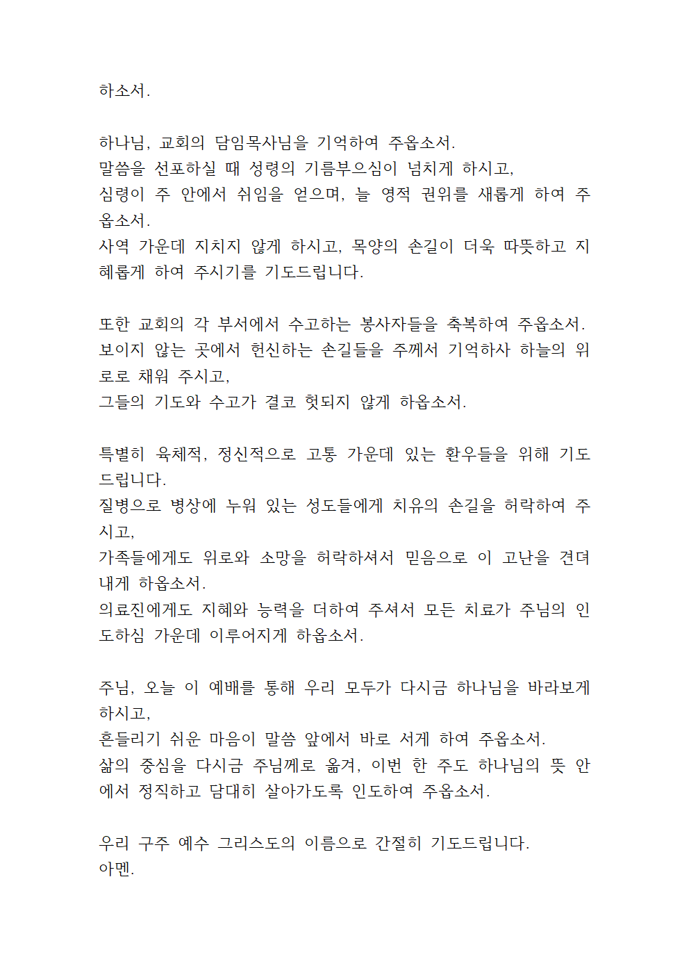 '8월 첫주일 대표기도문 모음'